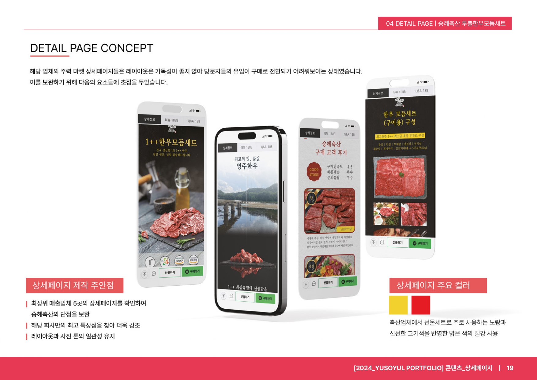 콘텐츠 상세페이지 _ 승혜축산 투뿔한우모듬세트 상세페이지 컨셉 콘텐츠 상세페이지 _ 승혜축산 투뿔한우모듬세트 상세페이지의 제작 주안점과 주요컬러에 대한 설명입니다.